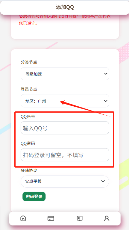 选择相对于的代挂地区填写账号与密码并登录