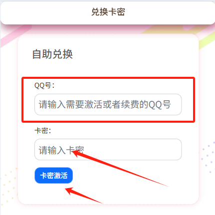 使用购买的卡密进行兑换下单QQ
