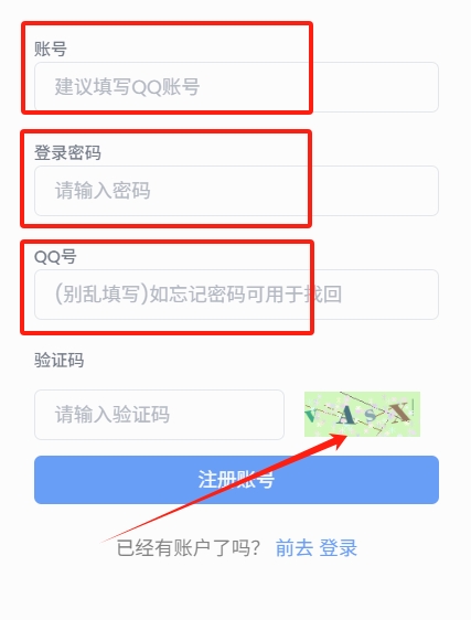 2.注册填写账号密码及QQ,请牢记账号密码!